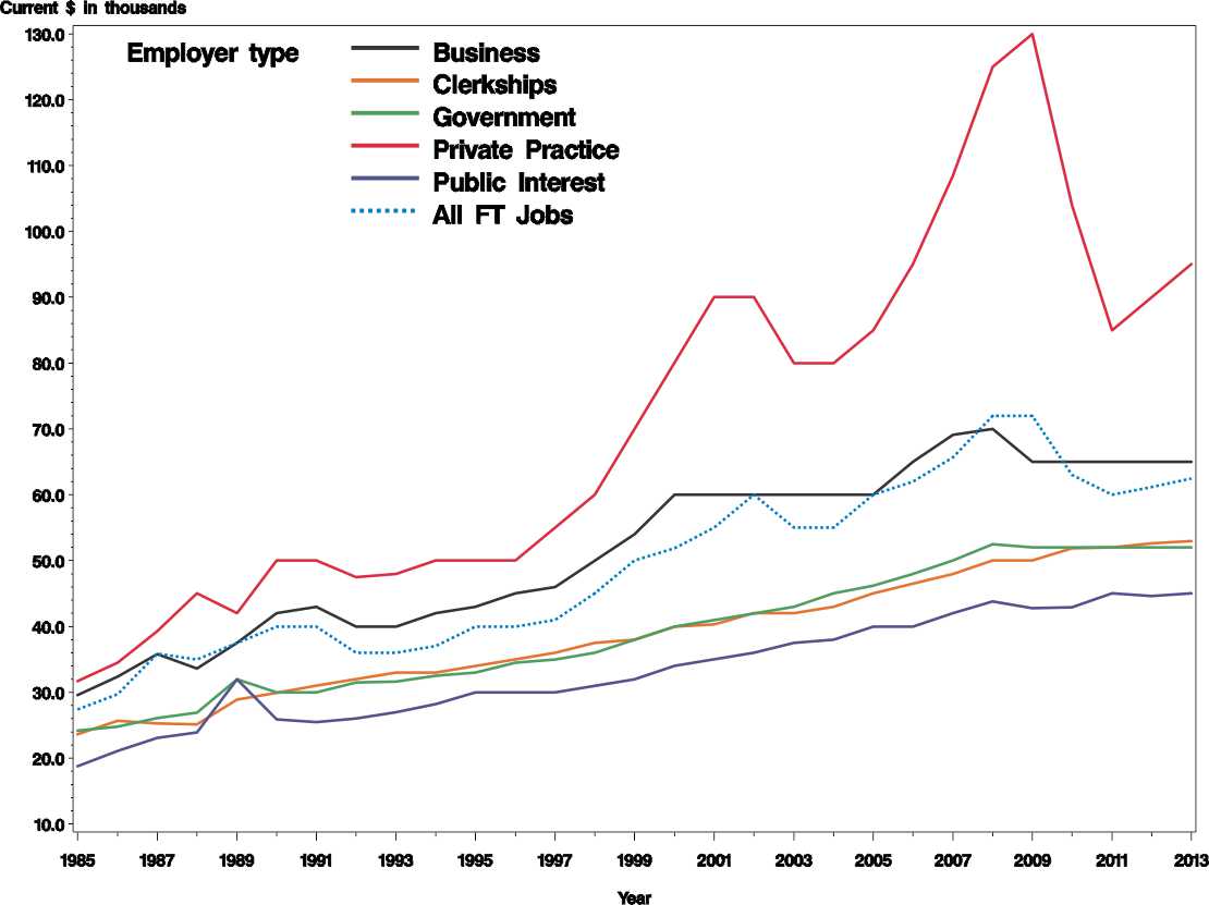 Source: Compiled from NALP graduate employment reports for the law school classes of 1985-2013.