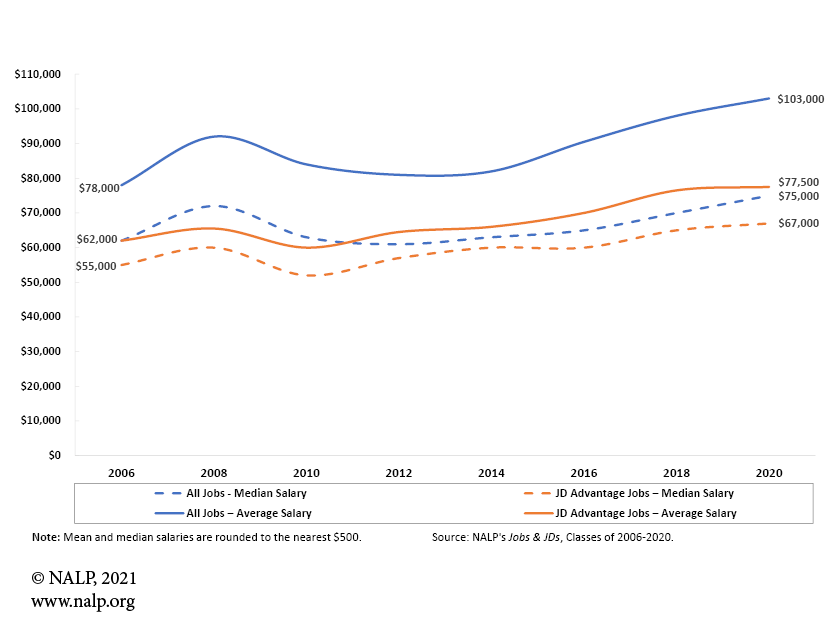 | JD Advantage Jobs – Average Salary ($) | 62,000 | 65,500 | 60,000 | 64,500 | 66,000 | 70,000 | 76,500 | 77,500 |