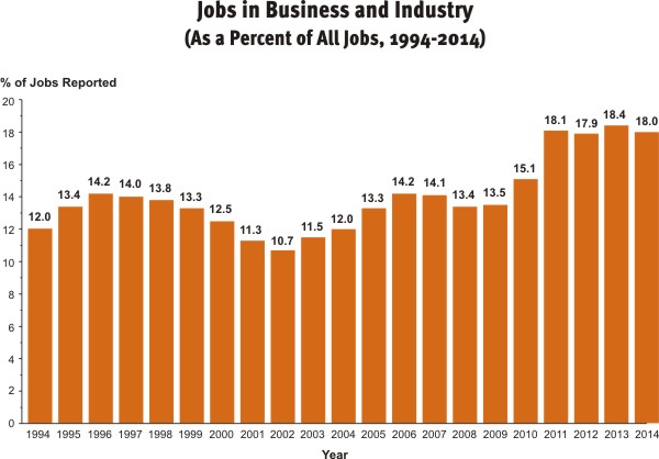Jobs in Business and Industry — Selected Trends 1994-2014