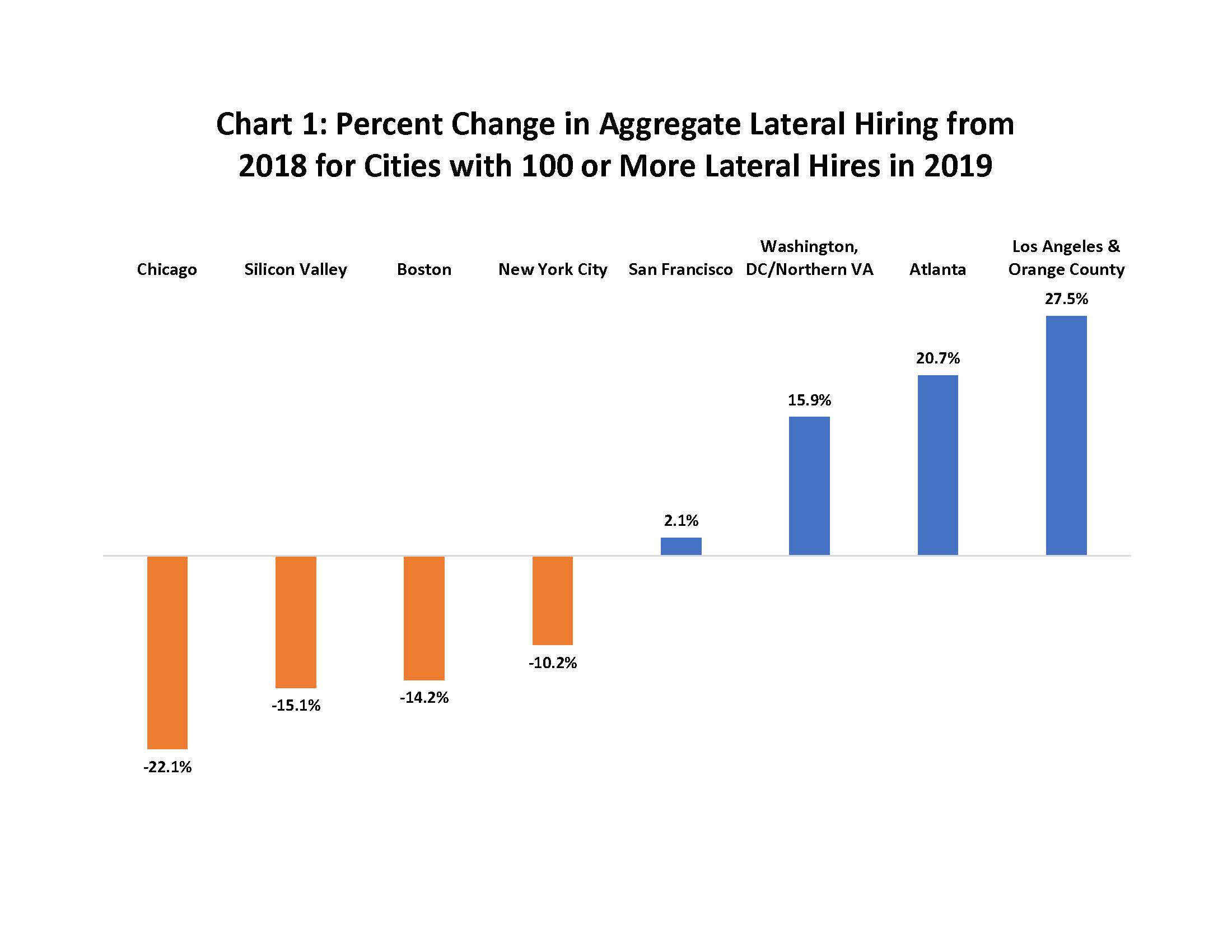 This table includes offices/firms which reported at least one lateral hire in 2018 or 2019 and which also reported complete information for both years. Collectively these 459 employers reported 7,537