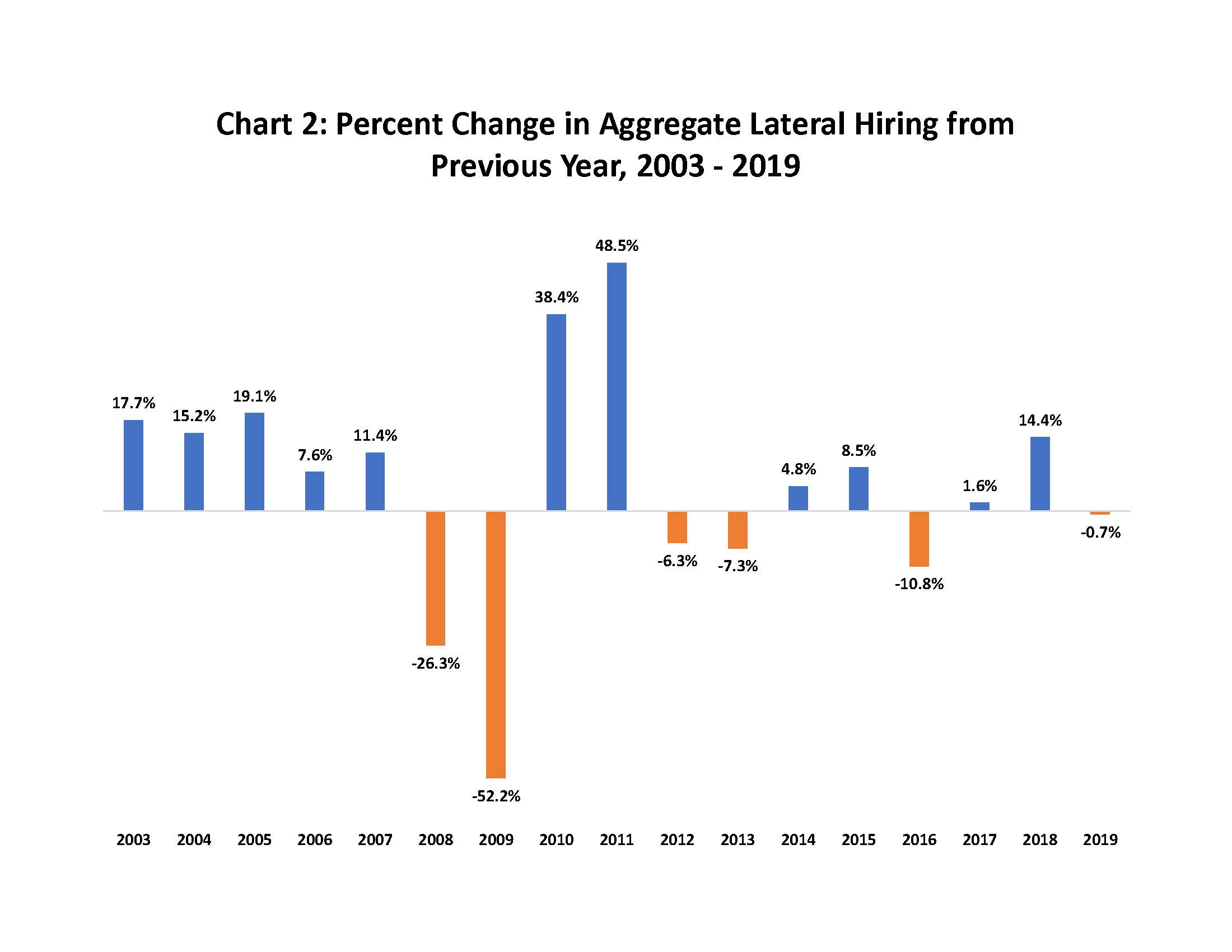 | Survey Year | % Change in Aggregate Lateral Hiring from Previous Year | Average # of Lateral Hires |