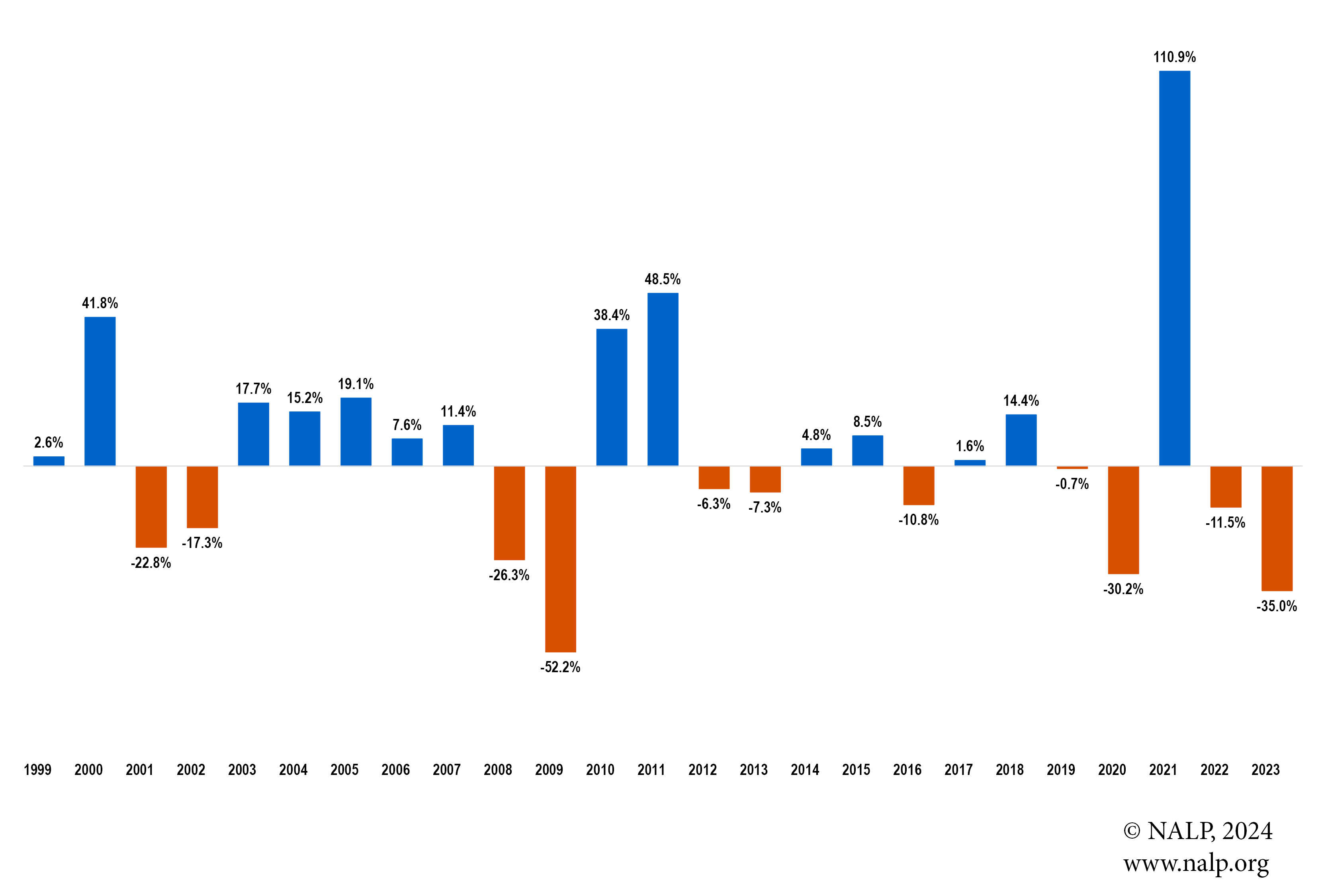 Chart 3. Percent Change in Aggregate Lateral Hiring from Previous Year, 1999 - 2023