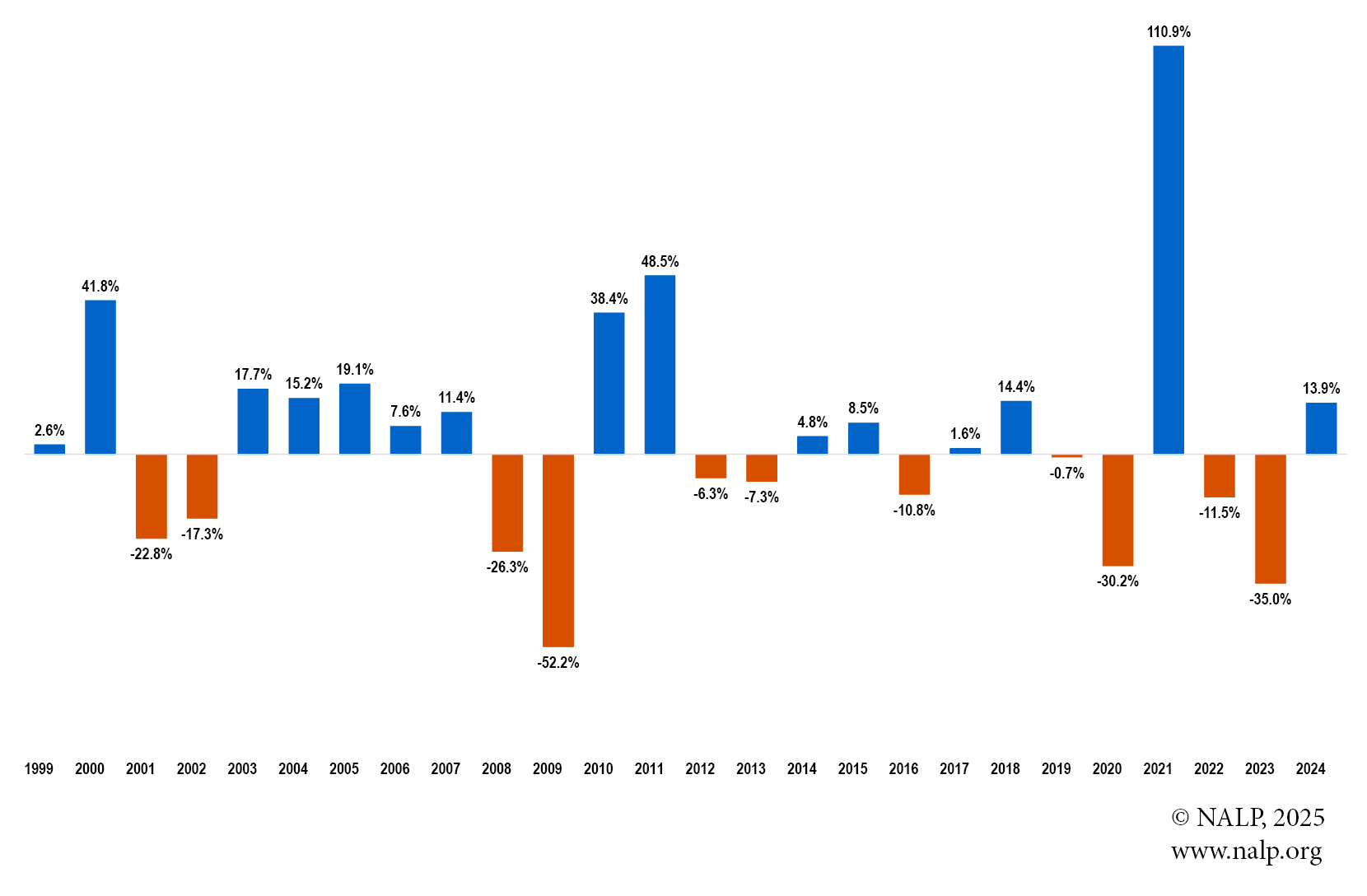 Chart 3. Percent Change in Aggregate Lateral Hiring from Previous Year, 1999 - 2024