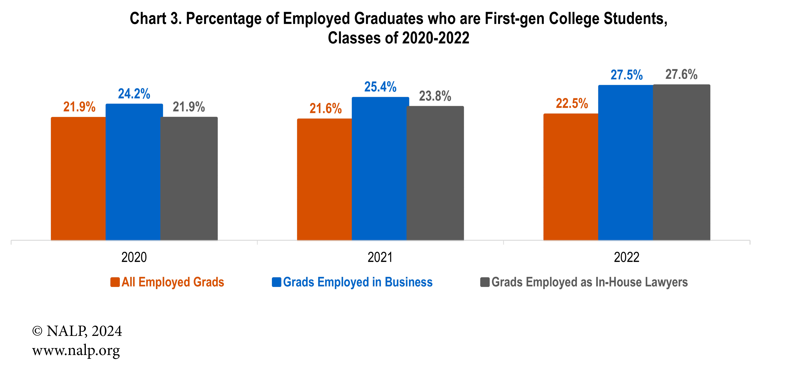 Source: NALP’s Employment Report and Salary Survey, Classes of 2020-2022