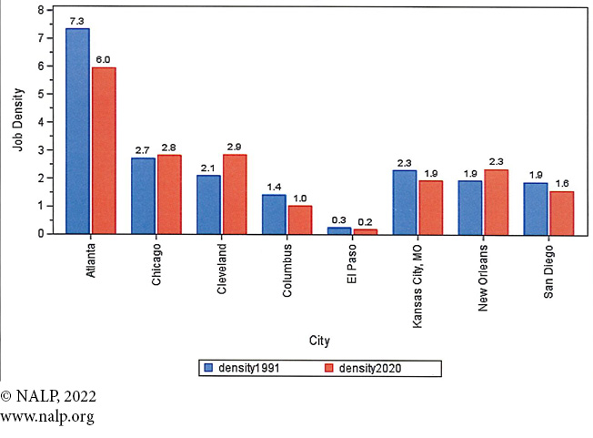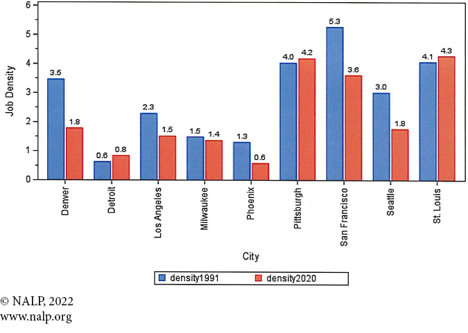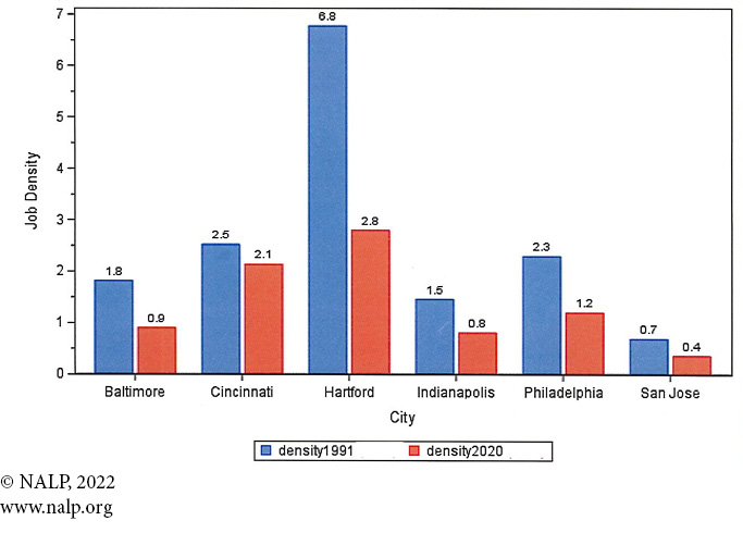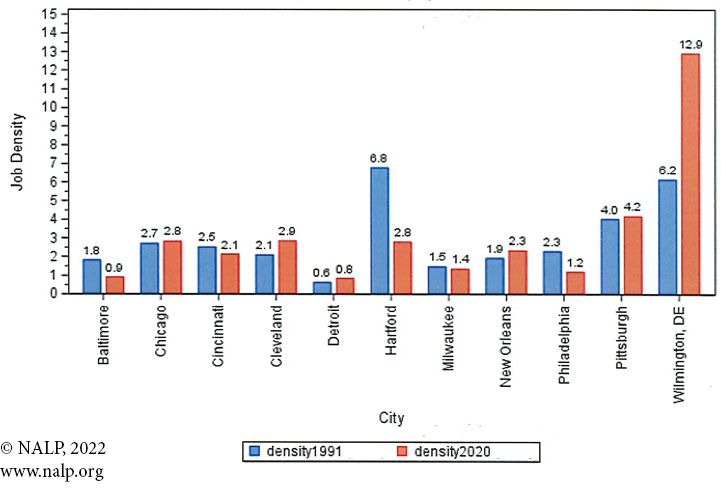 Figure 4a. Job Density — Cities with population loss from 1990-2020