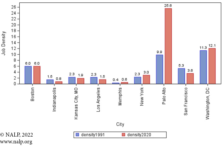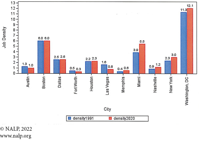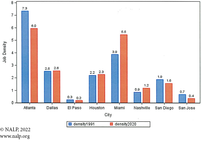 Figure 5c. Job Density — Cities with Job Change of less than 10% from 1991-2020