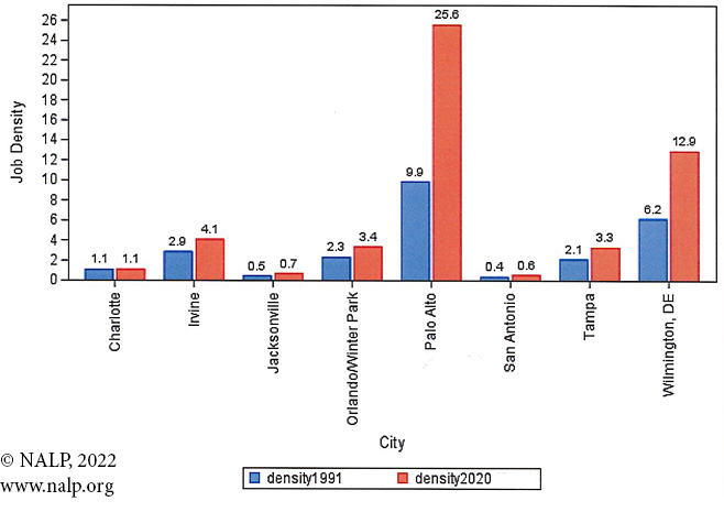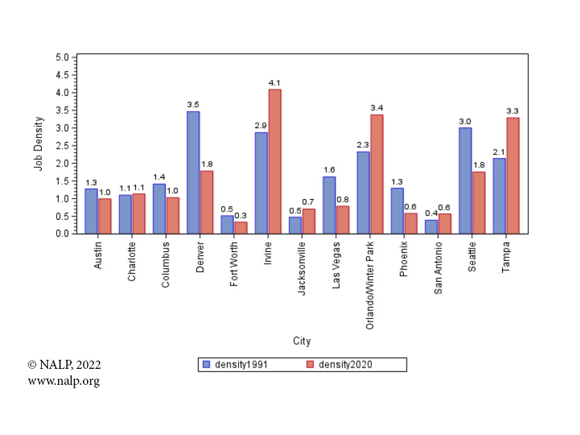 Figure 4c. Job Density — Cities with population growth of 25% to 40% from 1990-2020