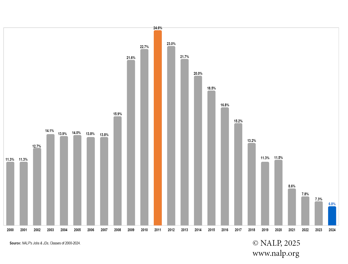 Source: NALP's Jobs & JDs, Classes of 2000-2024