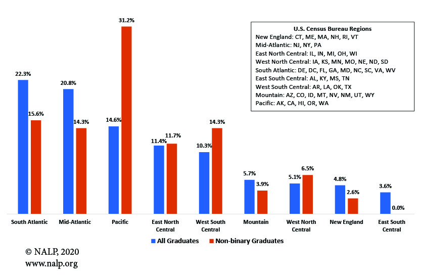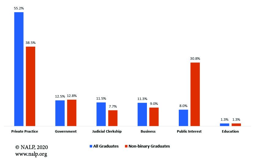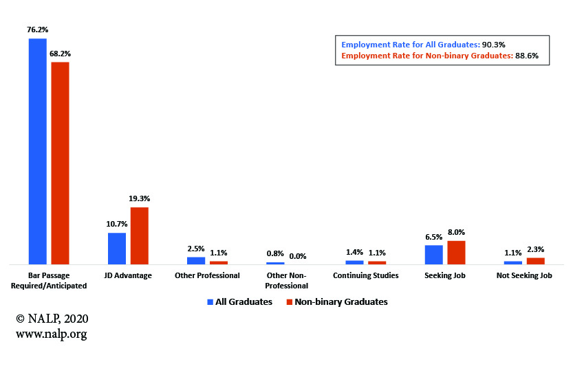 Additional data on non-binary law school graduate outcomes are available in Jobs & JDs: Employment and Salaries of New Graduates — Class of 2019.