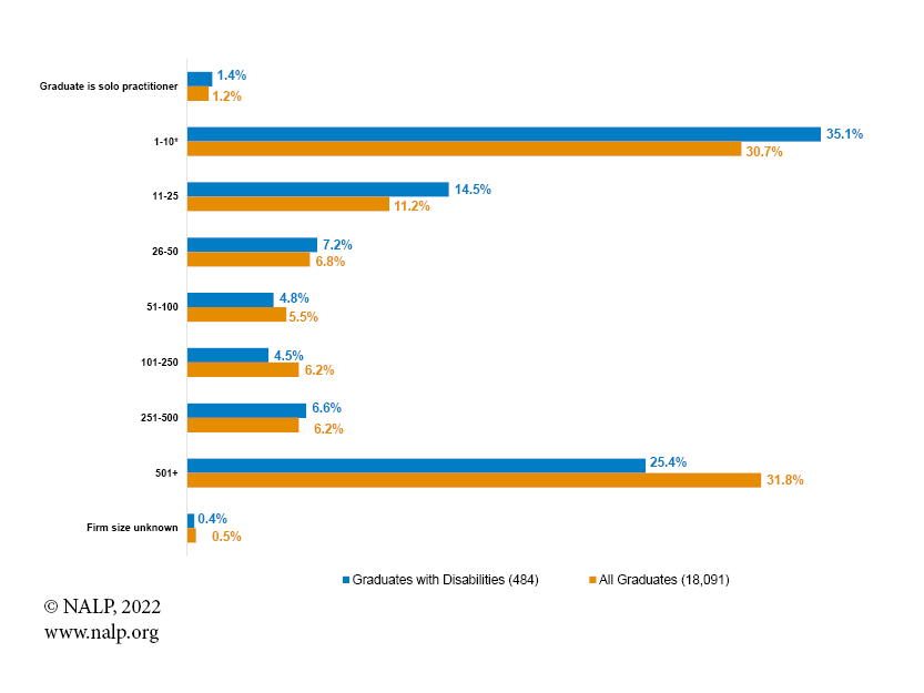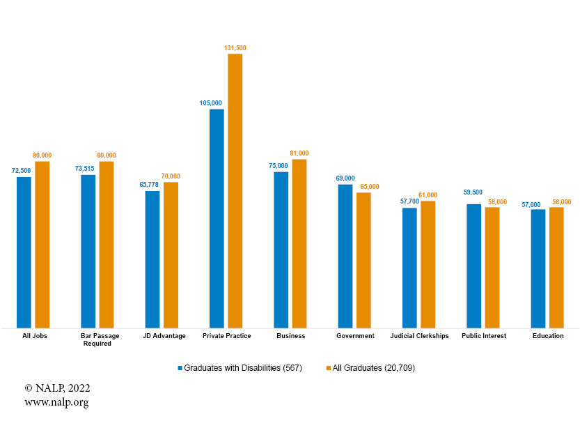 Additional data on graduates with disabilities are included in Jobs & JDs: Employment and Salaries of New Graduates, Class of 2021 — now available for purchase in the NALP Bookstore.