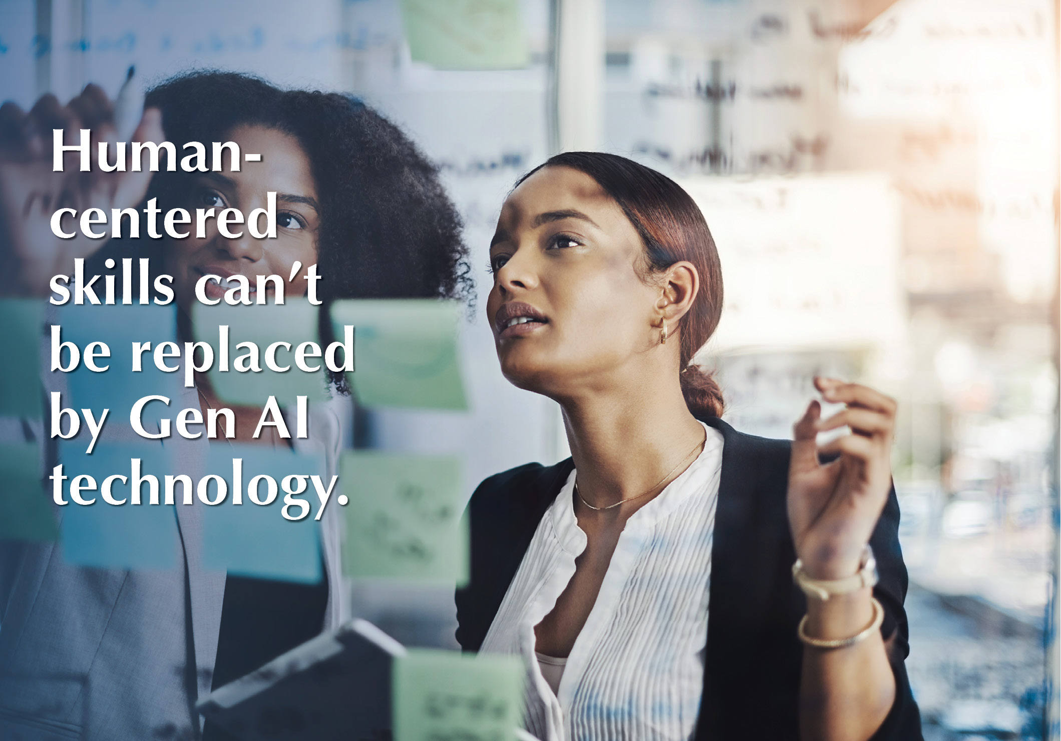Human-centered skills can’t be replaced by Gen AI technology. Furlong suggests that even highly advanced and incredibly accurate Gen AI tools will fail to displace human-centered skills like teamwork, collaboration, creativity, cultivating strong interpersonal relationships internally and externally with clients, emotional regulation, cultural fluency, and stress management. These are skills that technology won’t be able to do better, faster, and cheaper.